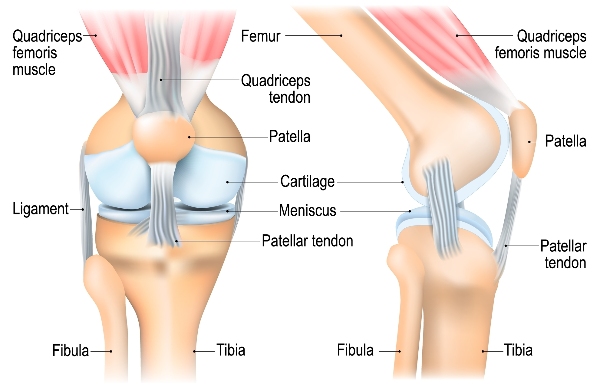 The knee is the largest joint in the body. It comprises of the lower part of the thighbone (femur) and upper part of the shinbone (tibia) as well as the kneecap (patella).